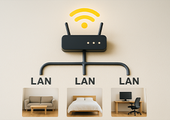 メディアターミナルから各居室へと配管接続しております。有線LANによる安定した利用が可能です。