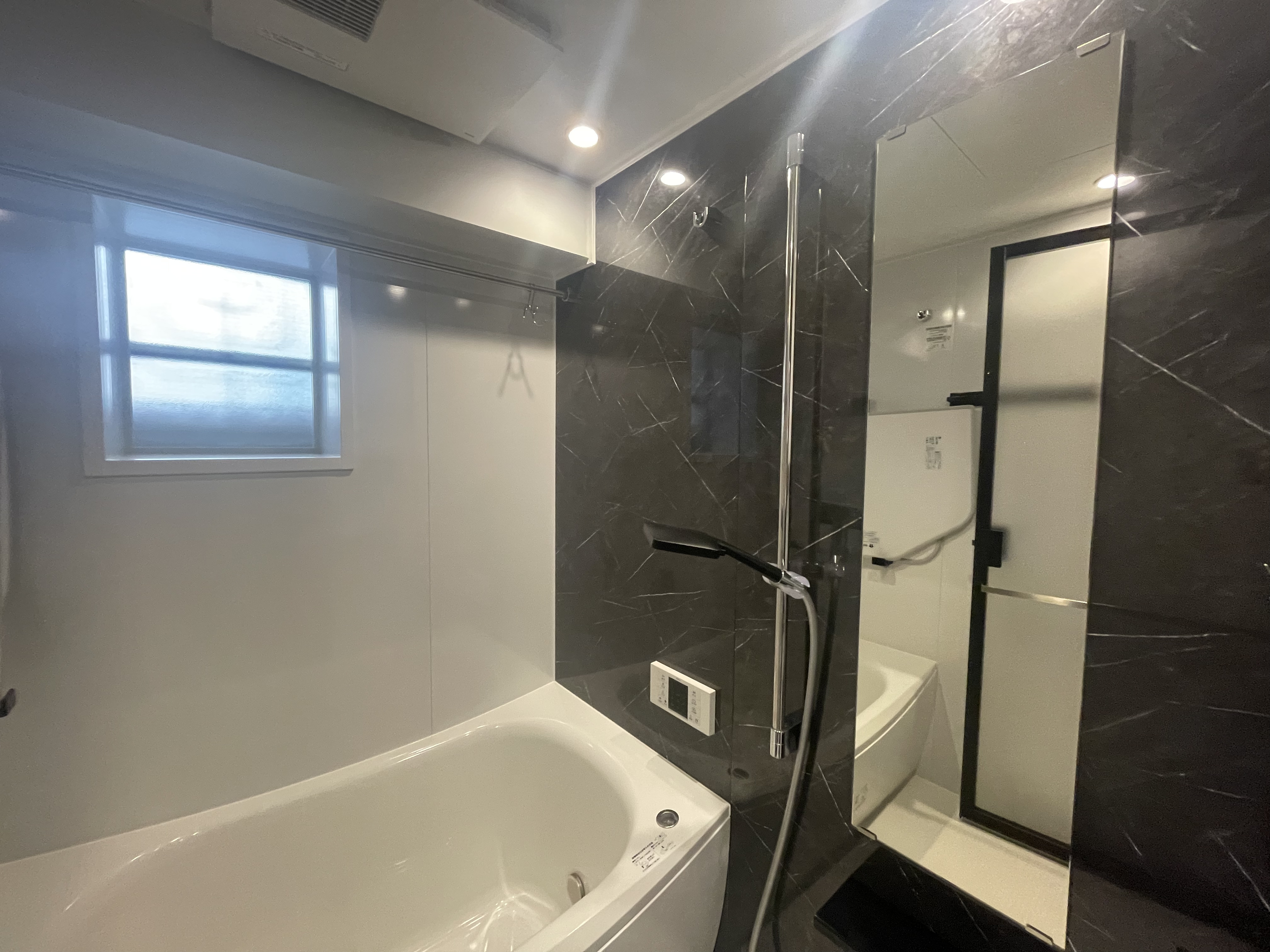 また、浴室は古い印象を受ける既存の窓を新規のすりガラスでカバーし、築年数の古さを感じさせない内装に仕上げました。こうした細やかな工夫により、築年数が古いヴィンテージマンションであっても古さを感じさせない内装に仕上がっています。