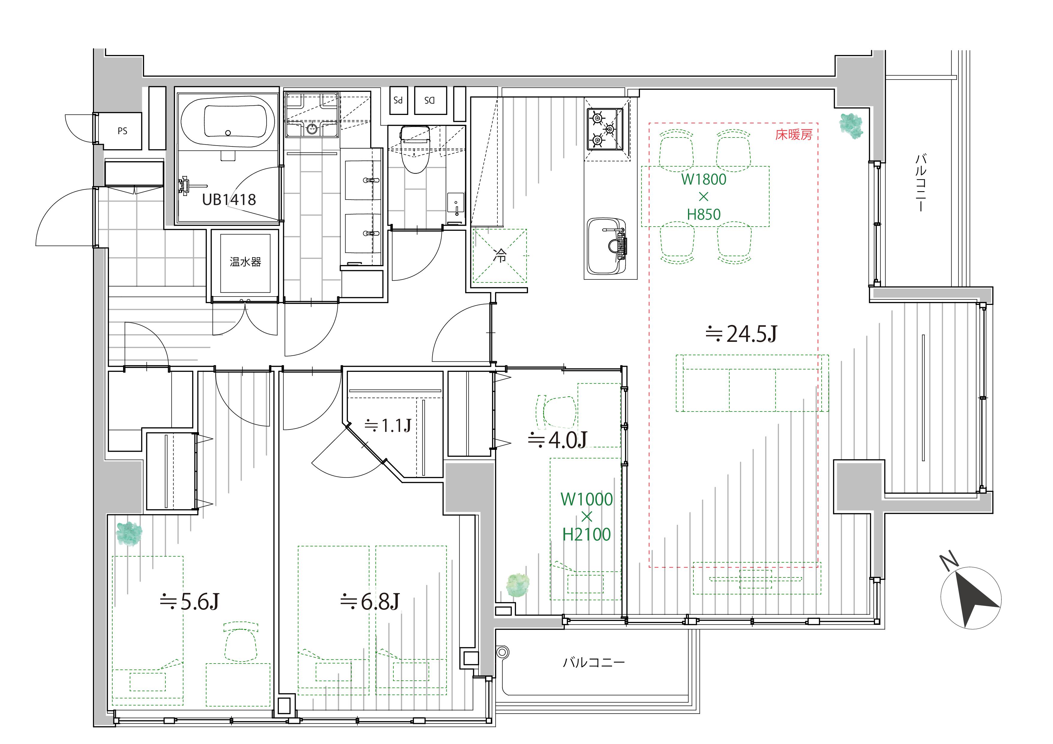フルスケルトンで間取りを変更、角部屋を生かすテレワーク空間付き広々3LDKに